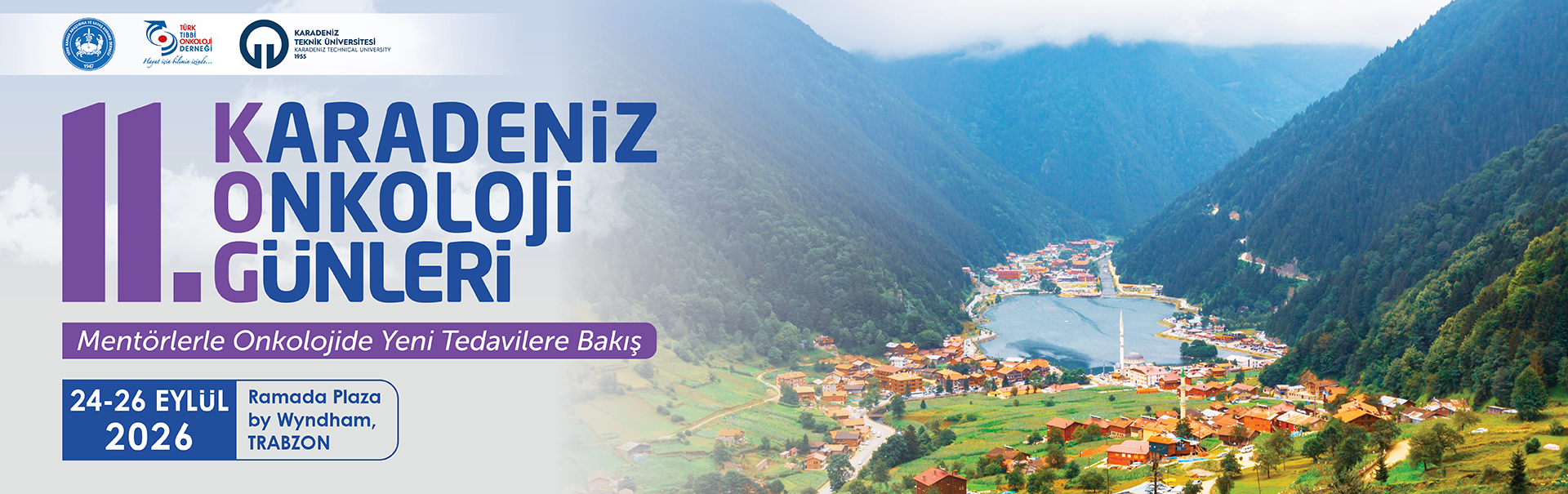 Türk Kanser Araştırma ve Savaş Kurumu Derneği tarafından düzenlenen “11. Karadeniz Onkoloji Günleri: Mentörlerle Onkolojide Yeni Tedavilere Bakış”, Türk Tıbbi Onkoloji Derneği ve Karadeniz Teknik Üniversitesi Tıp Fakültesi’nin değerli destekleriyle 24–26 Eylül 2026 tarihleri arasında Ramada Plaza by Wyndham, Trabzon’da gerçekleştirilecektir.